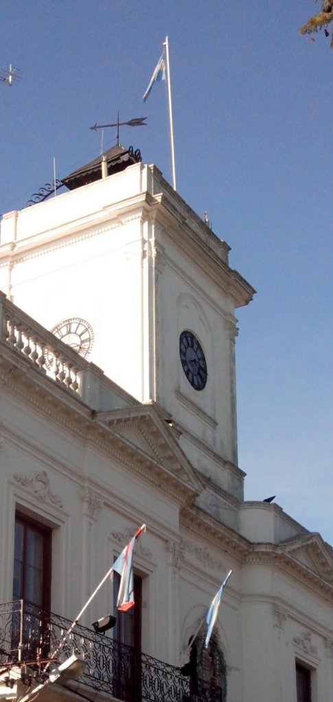 palacio municipal, para levantar sobre él la torre que sostuviera el reloj. La firma constructora victoriense «Guillino’, fue la encargada de realizar la infraestructura.